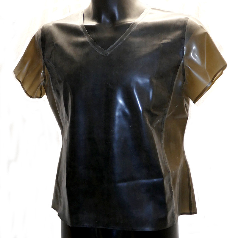 Einzelstück in Schwarz mit farblich abgesetzten Ärmeln und Seiten in Transparent Schwarz.